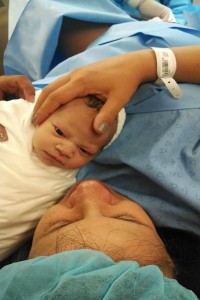 No exame físico uma notícia que adorei ouvir: o colo uterino tinha finalmente dilatado, apenas 3 cm, mas já estava bem melhor! Realmente tinha muitas contrações, mas elas não estavam tão intensas. Decidimos por iniciar a Ocitocina para ajudar, enquanto com o auxílio de uma Enfermeira maravilhosa, parti para os estímulos físicos: caminhada, agaixamento, exercícios na bola, banho…
