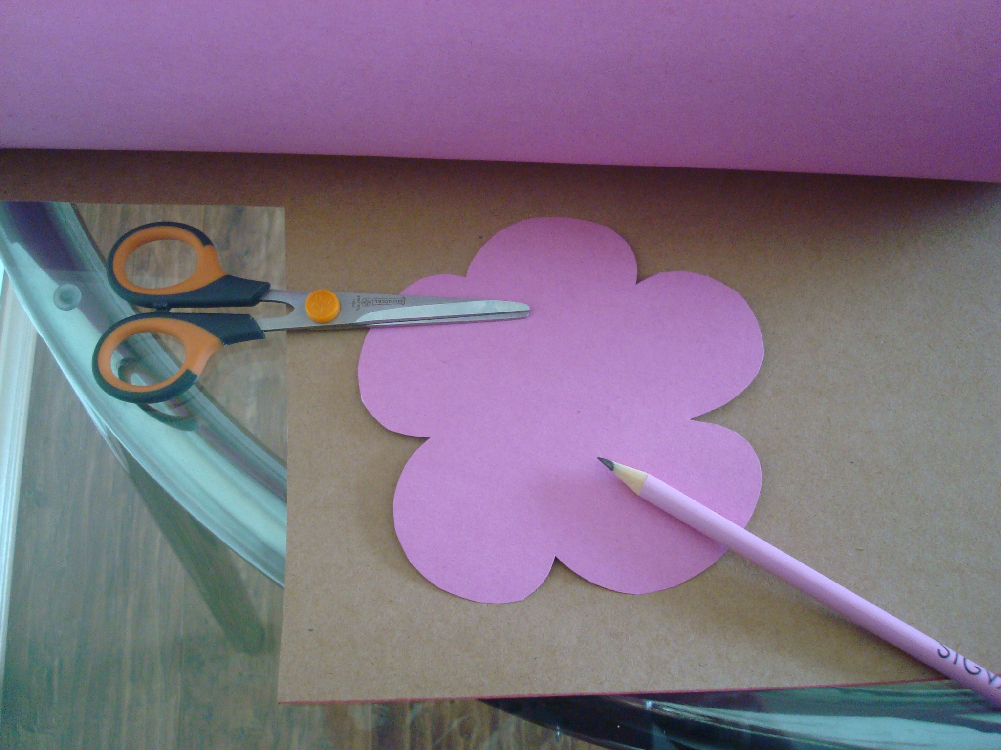 2. Primeiro Passo: desenhar um molde de Flor e cortar o papel cartão de acordo com o molde, lembrando que tem que ter sempre um para frente e outro para trás.