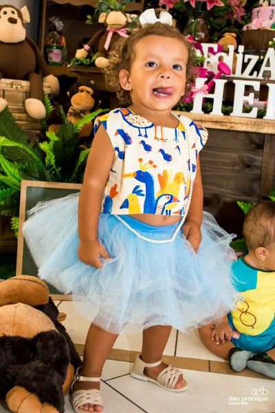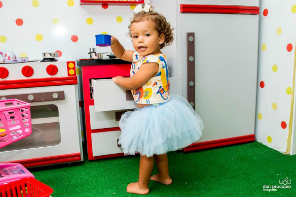 Por fim, a última decisão com relação a festa da baixinha foi o seu look. Queria algo feminino sem ser óbvio demais. Lindo, charmoso, delicado, divertido. De cara sabia que queria uma Saia Bem Esvoaçante, pois essa é a verdadeira paixão da minha filha – ela coloca uma saia e sai pulando, “dançando Ballet” como ela diz. Optei por um tutu lindo e para sair do rosa cai no azul clarinho.